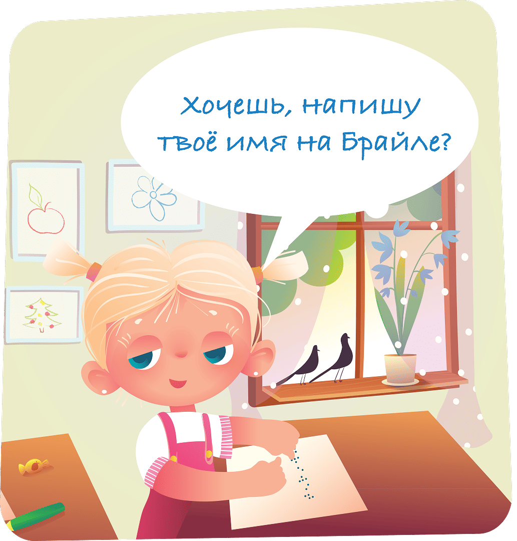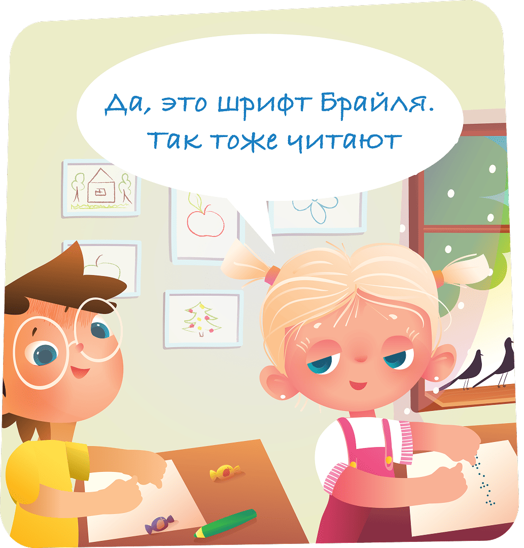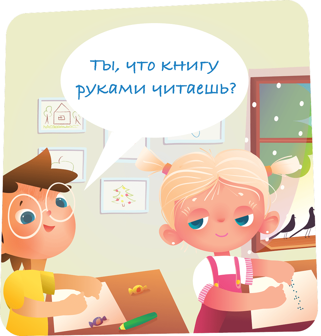 Не все люди читают глазами. Кто-то читает руками или слушает. Лучше задать вопрос напрямую и вежливо, чем гадать или говорить через других. Обращаясь к любому человеку, в первую очередь нужно поздороваться. Но если твой собеседник слабовидящий или незрячий, важно назвать свое имя и представить всех участников разговора. В неформальной обстановке можно дополнительно описать внешность. Будет здорово, если ты опишешь пространство вокруг. Например «я держу плюшевого медвежонка, а Оля в стоит в ярком платье».